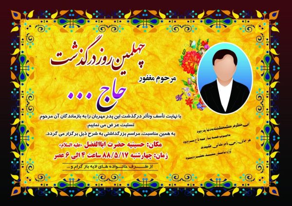 طراحی آگهی ترحیم ، آگهی فوت لایه باز، دانلود آگهی چهلم با امکان ویرایش با استفاده از فتوشاپ ، دانلود آگهی فوت psd در ایگوری گرافیک