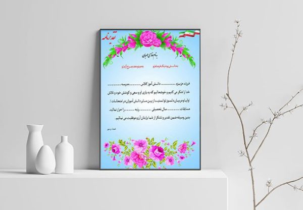 تقدیر نامه دانش آموزی – لوح تقدیر ممتاز