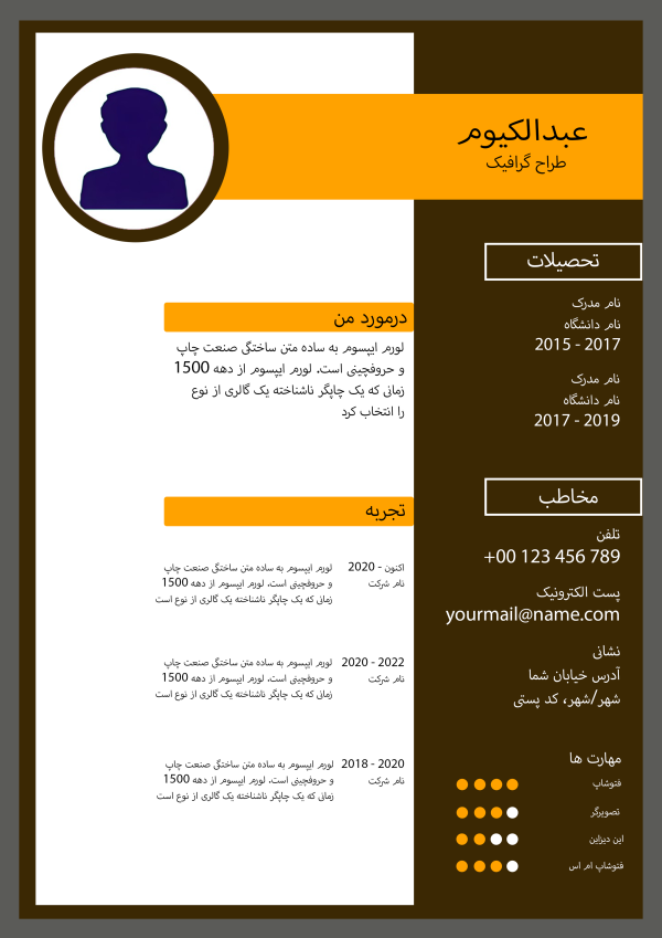 رزومه کاری شگفت‌انگیز با طراحی لایه باز منحصر به فرد. اطلاعات دقیق و کامل از تجربیات حرفه‌ای شما | رزومه با طراحی مدرن و جذاب برای ساخت رزومه شخصی