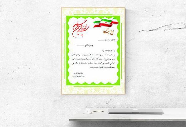 لوح تقدیر اداری طرح شکیل به صورت لایه باز – دانلود طرح آماده از لوح سپاس یا تقدیر نامه شرکتی psd با امکان ویرایش و تغییر آن
