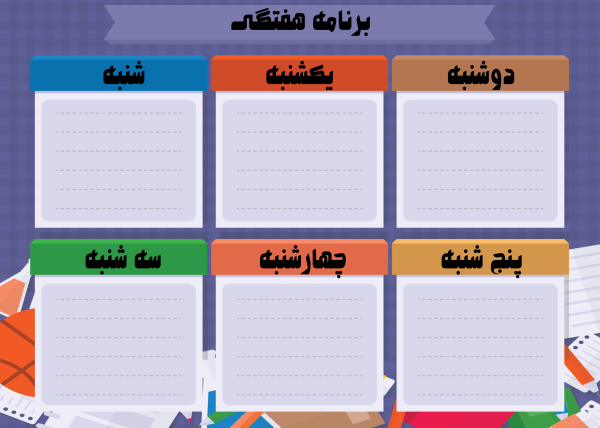 طرح ساده و مینیمال برنامه هفتگی دانش آموزی به صورت لایه باز و در انواع فایل ها , Png , Eps , Ai , Psd جهت استفاده دانش آموزان دختر و پسر.
