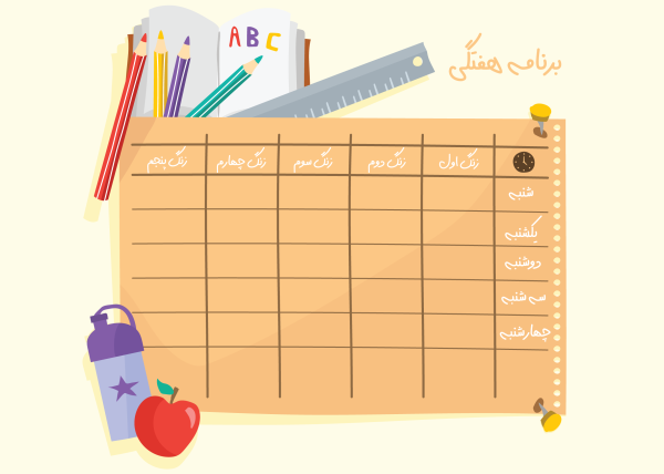 دانلود و خرید طرح برنامه هفتگی دانش آموزی به صورت لایه باز و با فرمت رنگ CMYK در انواع فایل ها , Png , Eps , Ai , Psd