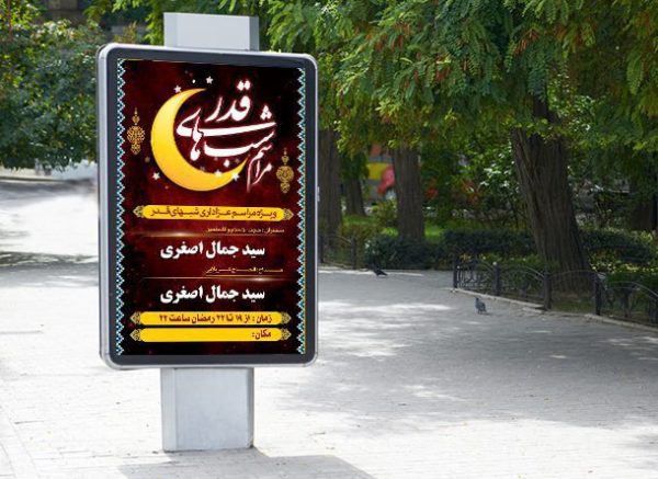 پوستر شهادت حضرت علی (ع) شبهای قدر رمضان , بنر خام اطلاعیه شبهای قدر مراسم شب های احیا لایه باز با فرمت psd و با امکان ویرایش