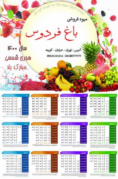 تقویم لایه باز 1400 – تقویم دیواری میوه فروشی لایه باز و با فرمت PSD – تقویم دیواری سال جدید 1400 با امکان ویراش با فتوشاپ