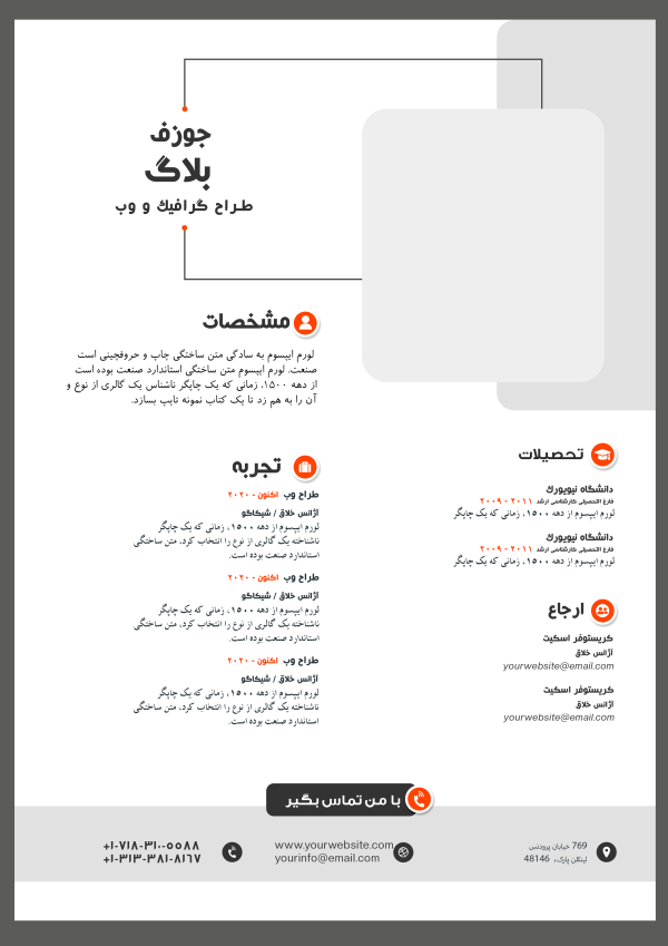 رزومه کاری شگفت‌انگیز با طراحی لایه باز منحصر به فرد. اطلاعات دقیق و کامل از تجربیات حرفه‌ای شما | طرح رزومه با طراحی مدرن و جذاب برای ساخت رزومه شخصی