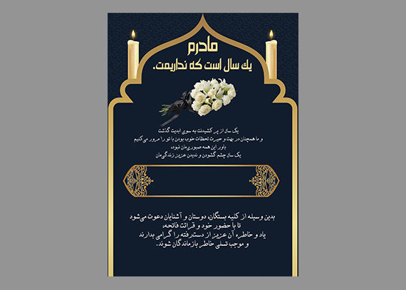 آگهی ترحیم اعلامیه سالگرد مادر با طراحی رسمی و احساسی، فایل لایه باز فتوشاپ با کیفیت چاپ بالا و قابلیت شخصی‌سازی آسان مناسب برای سالگرد مادر و یا زن