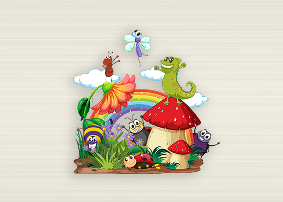 طرح دنیای حشرات و حیوانات باغچه با رنگین‌کمون