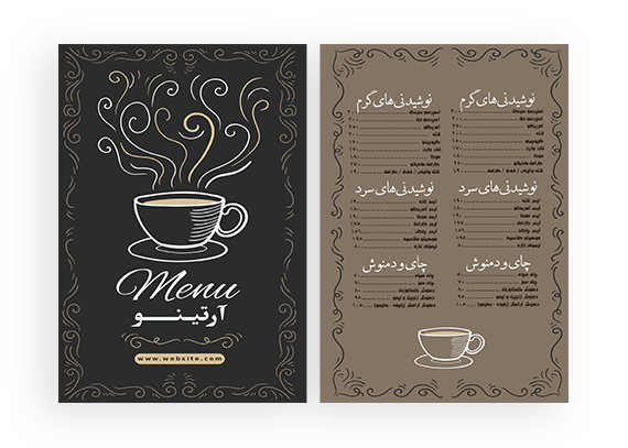 طرح منوی کافی‌شاپ لایه باز | خام، حرفه‌ای