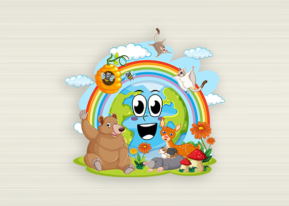 طرح کودکانه حیوانات و کره و رنگین کمان