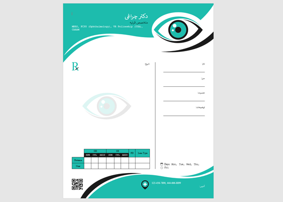 “دانلود سرنسخه آماده چشم‌پزشکان با فرمت ورد (.docx). طراحی استاندارد و قابل ویرایش، مناسب برای چاپ نسخه‌های حرفه‌ای در مطب‌های چشم‌پزشکی.”