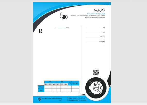 “طرح سرنسخه چشم‌پزشکی در قالب ورد (.docx) با طراحی شیک و استاندارد، مناسب برای پزشکان حرفه‌ای. قابلیت ویرایش آسان و آماده چاپ.”