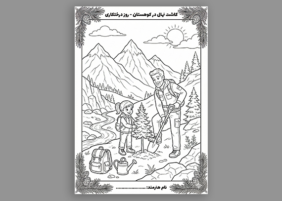 کاربرگ خلاقانه روز درختکاری با طراحی کودک‌پسند، مناسب آموزش غیرمستقیم حفاظت از طبیعت به دانش‌آموزان ابتدایی. کاربرگ طرح کاشت درخت در روز درختکاری
