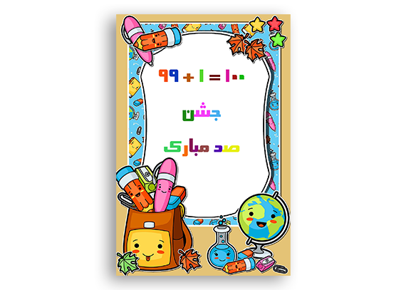 طرح کارت جشن صد دانش‌آموزان با کیفیت بالا، مناسب چاپ در سایز ۳۰×۵۰ سانتی‌متر، ایده‌آل برای مدارس و کلاس‌های ابتدایی.